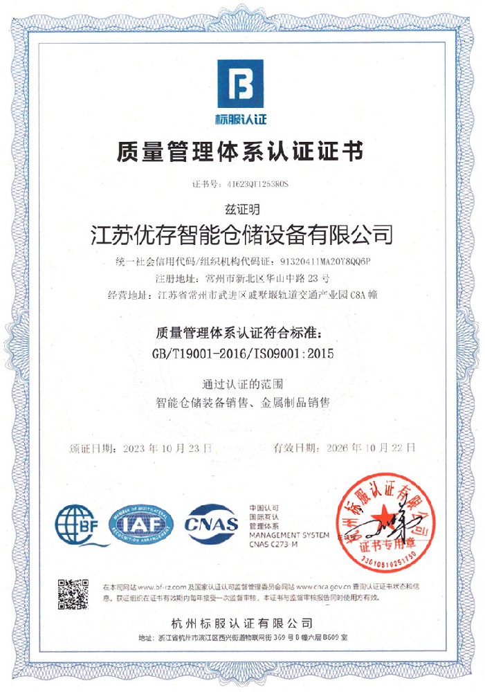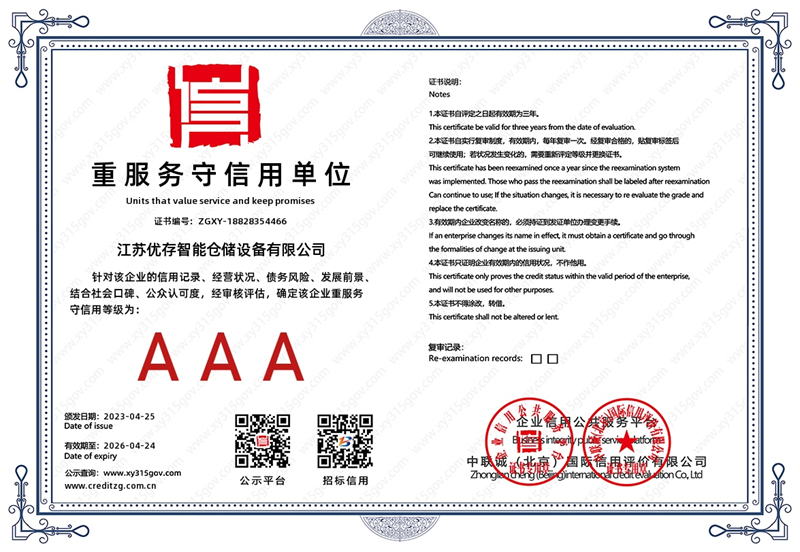 歡迎光臨江蘇優(yōu)存智能倉(cāng)儲(chǔ)設(shè)備有限公司官方網(wǎng)站!